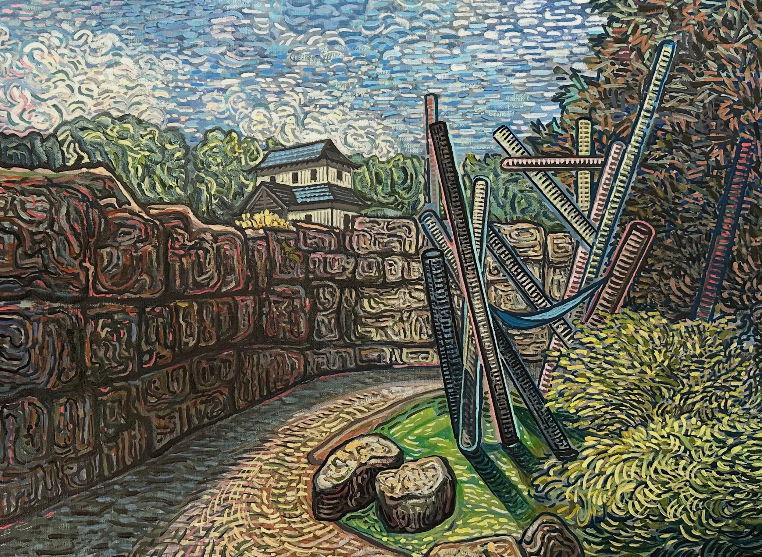Acrylic and oil on linen; 18” x 24”, 2024, $350